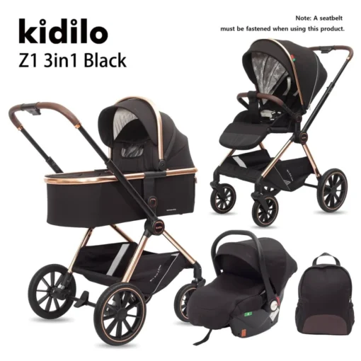 La poussette trio modulaire 3 en 1 KIDILO Z1 est un système de voyage complet et élégant, adapté aux enfants de la naissance jusqu’à 4 ans. Elle comprend une poussette réversible, un landeau, un siège auto avec couvre-jambes, un sac à langer, ainsi qu’un cache-pluie et une moustiquaire, pour garantir un maximum de confort et de protection en toute saison.