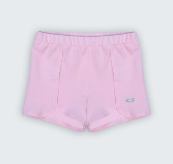 Short en piqué rose 100% coton doté d’une taille élastique et découpe sur le devant qui ajoute une touche de style supplémentaire, ainsi une petite broderie qui apporte une note délicate et élégante